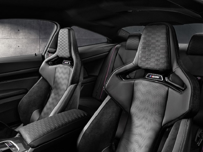 Tříbarevná skořepinová sedadla M Carbon uvnitř BMW M4 Competition x Kith se vyznačují trikolorou BMW M, která oživuje černé celokožené čalounění Merino. Stejně jako v případě BMW M3 E30 Ronnieho Fiega je nápis Kith vyražen do černé kůže předních a zadních hlavových opěrek a středové loketní opěrky modelu BMW M4 Competition x Kith. Středová konzola se vyznačuje exkluzivním znakem s logem Kith a BMW M proužky. Nápis Kith nese také podsvícené logo M pod hlavovými opěrkami.