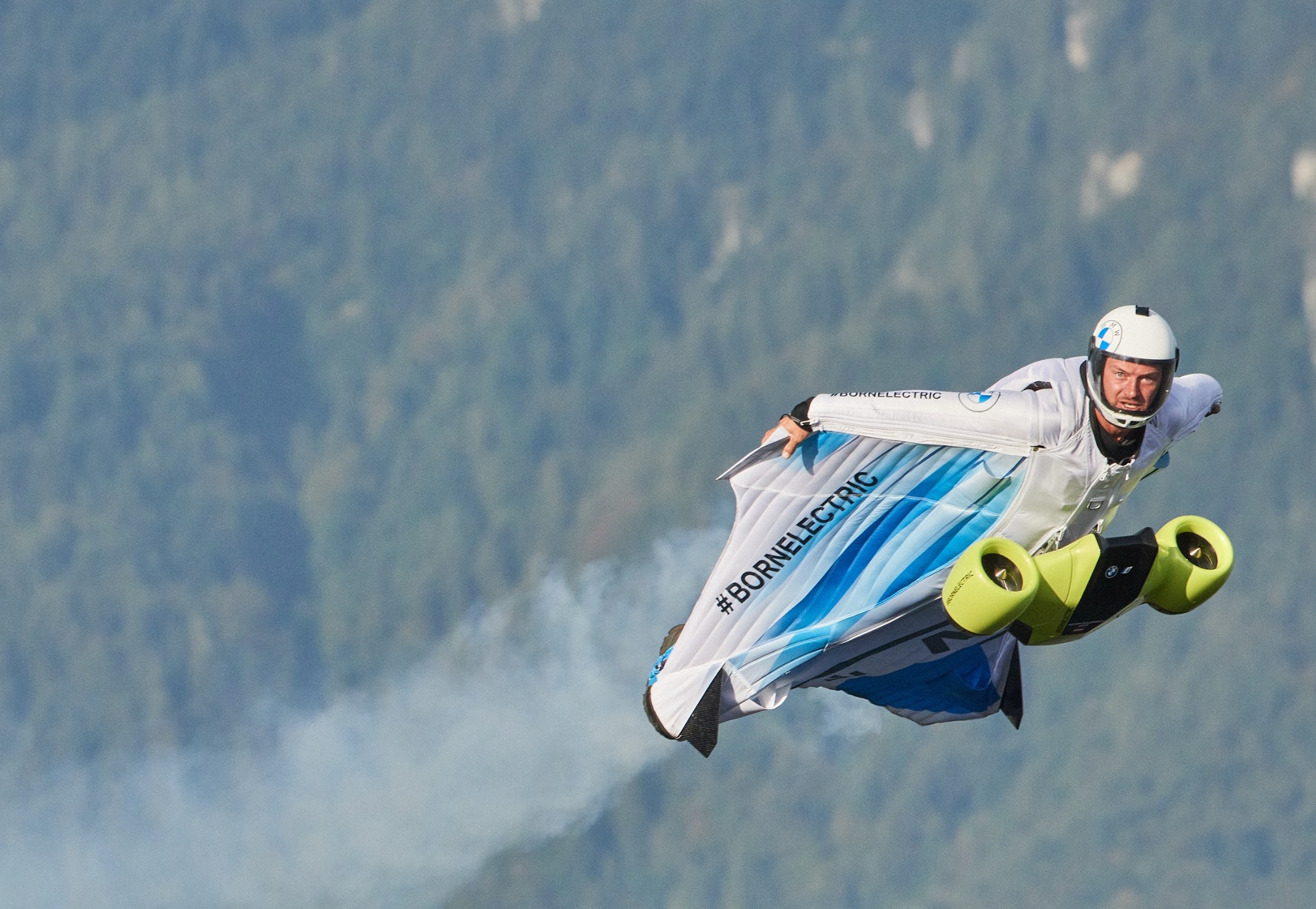 První let s elektrifikovaným wingsuitem za podpory BMW i