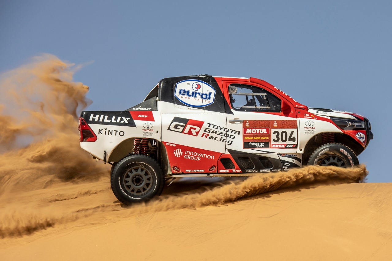 Tým bude soutěžit s nejnovějším provedením Toyoty Hilux, postavené a vyvinuté v sídle týmu nedaleko kultovního soutěžního okruhu Kyalami v jihoafrickém Johannesburgu. Současný vůz vychází ze, závody prověřené, Toyoty Hilux, uvedené v roce 2018; používá motor mezi nápravami, nezávislé zavěšení zadních kol a pohon obou náprav. Vůz v průběhu let doznal mnoha významných vylepšení a jeho výsledky na Rallye Dakar jsou nezpochybnitelným důkazem spolehlivosti a odolnosti, která je s modelem Hilux spojována. Při prvním nasazení v roce 2018 s tímto vozem tým vybojoval druhé a třetí místo, na nějž navázalo celkové vítězství v roce 2019 a druhé místo v ročníku 2020.