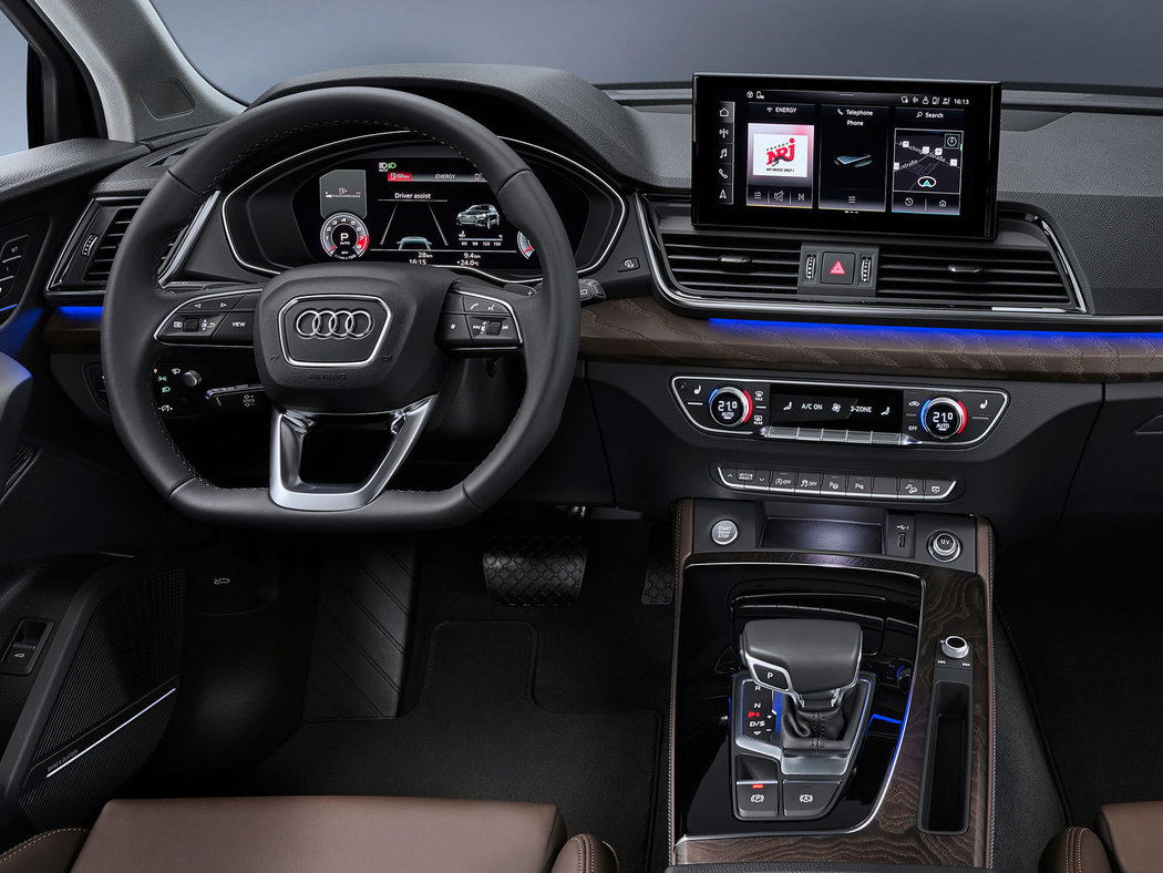 Q5 Sportback přebírá novou techniku v oblastech ovládání, zobrazování, informací a zábavy od modernizovaného modelu Q5. Jedná se o třetí generaci modulární platformy MIB 3 pro informační a zábavní systémy. Kompletní výbava na přání zahrnuje digitální panel přístrojů Audi virtual cockpit plus s displejem o úhlopříčce 12,3 palce a průhledový displej. K snadnému a bezpečnému ovládání nejdůležitějších funkcí a ukazatelů slouží multifunkční volant plus.