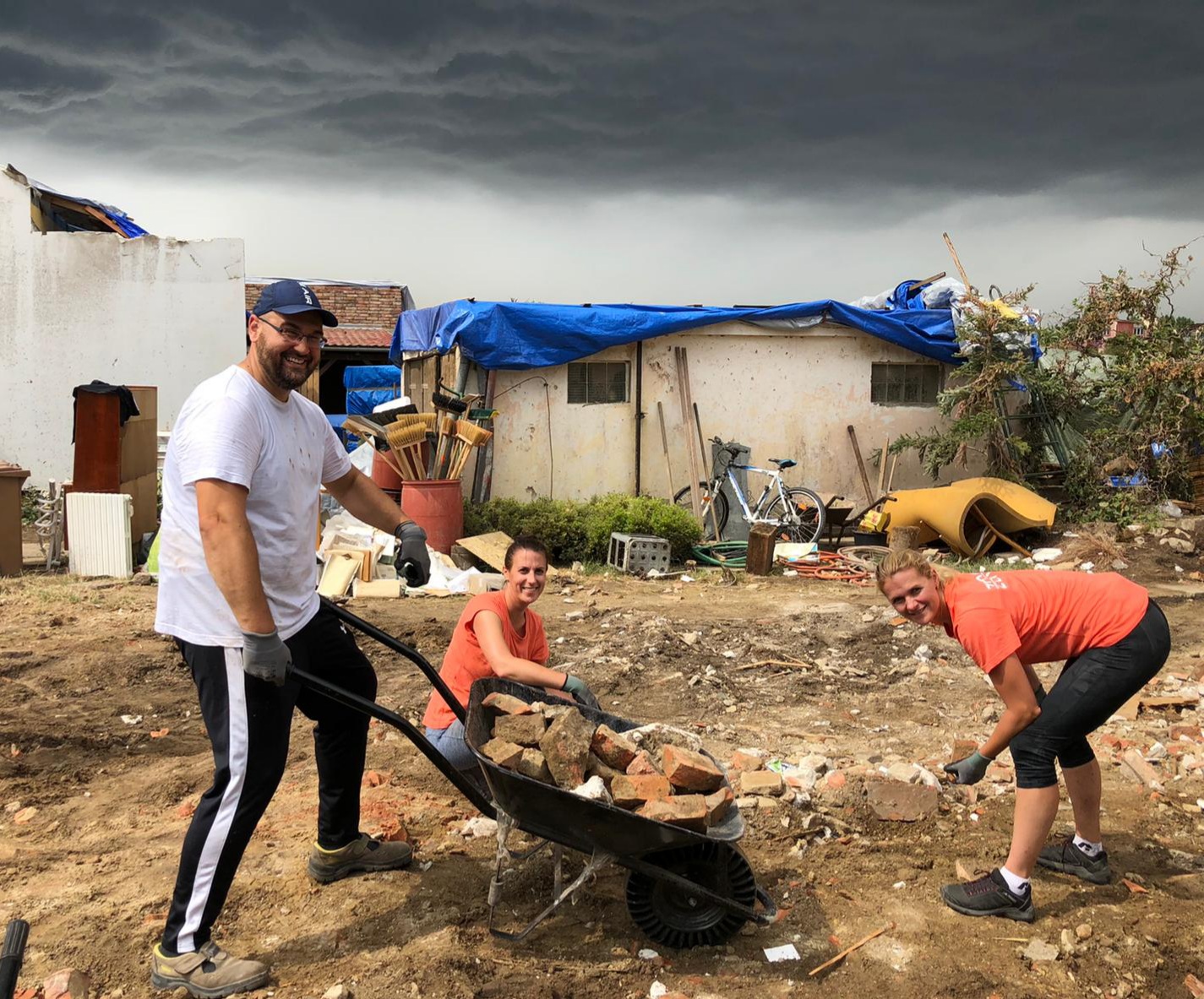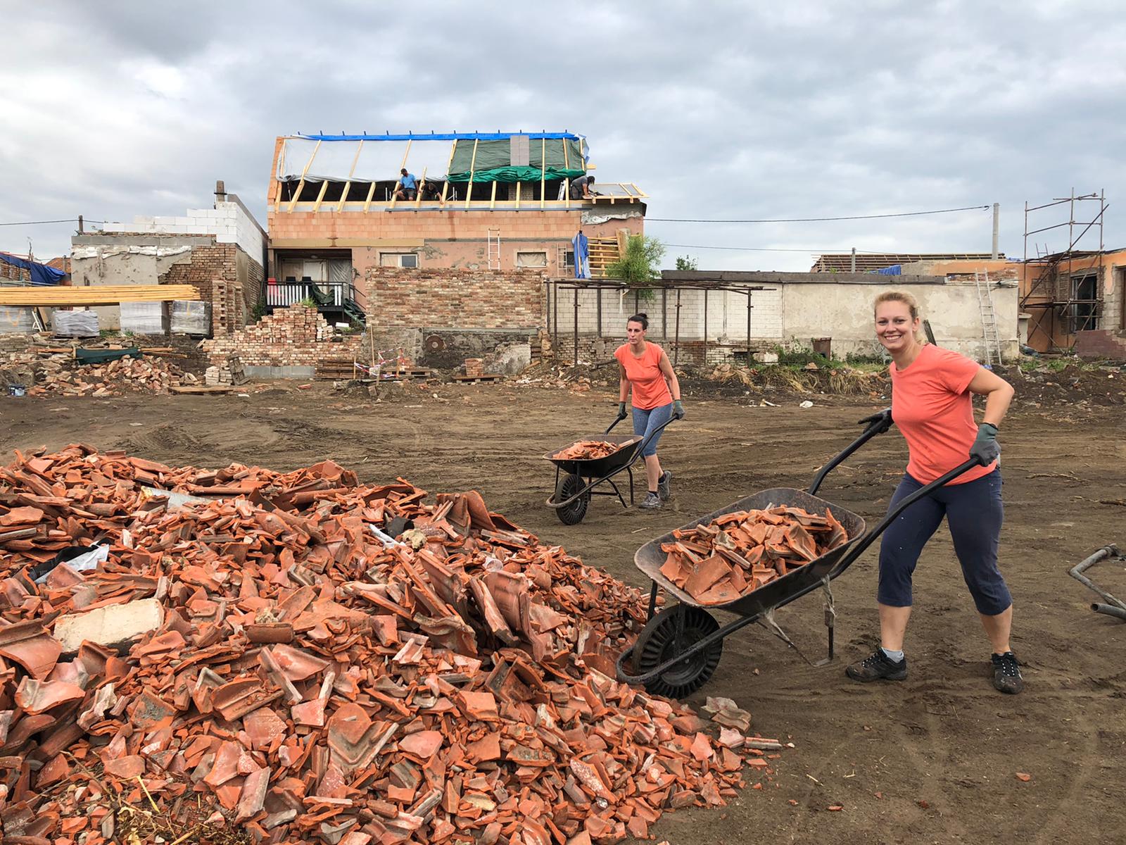 Mimo finanční pomoci se zaměstnanci Porsche ČR rozhodli pomoci přímo na místě. V rámci projektu Volunteering Days, kdy Porsche ČR poskytne jeden pracovní den za rok každému zaměstnanci na aktivní podporu sociálních a charitativních projektů, odjel do Mikulčic tým osmi lidí. „Byl to velmi silný zážitek. Kromě zničených domů jsme slyšeli i spoustu dojemných příběhů lidí,“ komentuje Martina Hlůžková, jedna z dobrovolnic. Za jeden den se týmu Porsche ČR podařilo postavit a provizorně zakrýt dvě střechy, ručně zbourat dvě stěny zničených domů a odklidit suť. „Práce je tam ovšem ještě mnoho a rekonstrukce domů i celé obce potrvá několik měsíců. V srpnu proto pošleme do vesnice další tým dobrovolníků,“ říká Franz Pommer, jednatel společnosti.